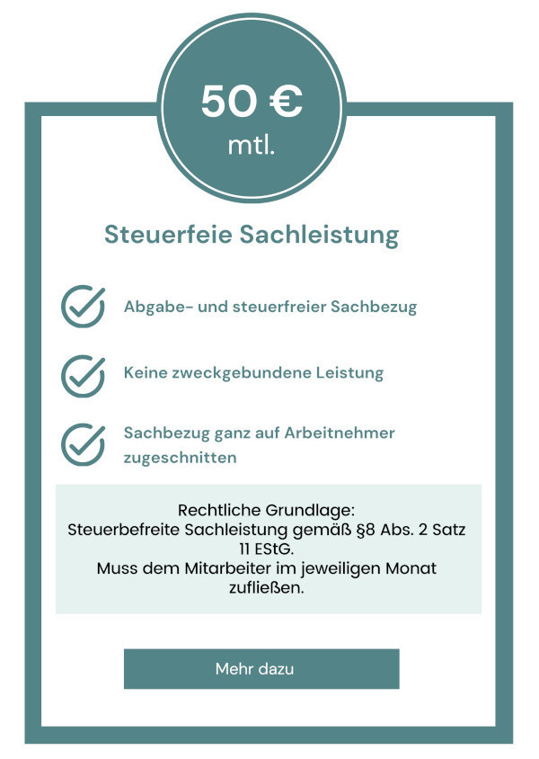 Während bei klassischen Gehaltserhöhungen ein großer Teil durch Steuern und Abgaben verloren geht, können Sachbezüge im Rahmen der gesetzlichen Vorgaben steuerfrei bzw. steueroptimiert genutzt werden. Das bedeutet: